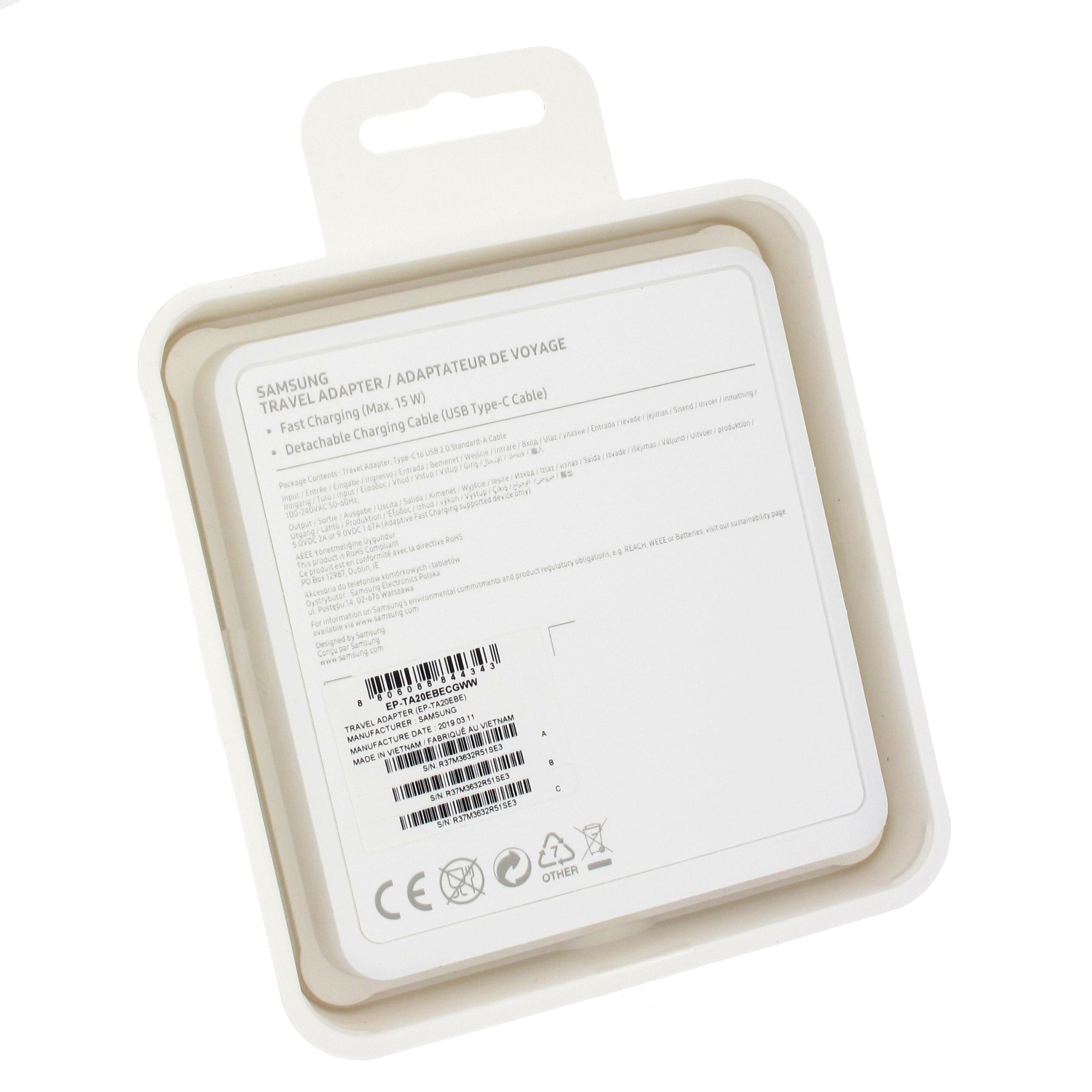 Samsung Ladegerät + USB Kabel Type-C, Schwarz, Fast Charge 15W, EP-TA20EBECGWW